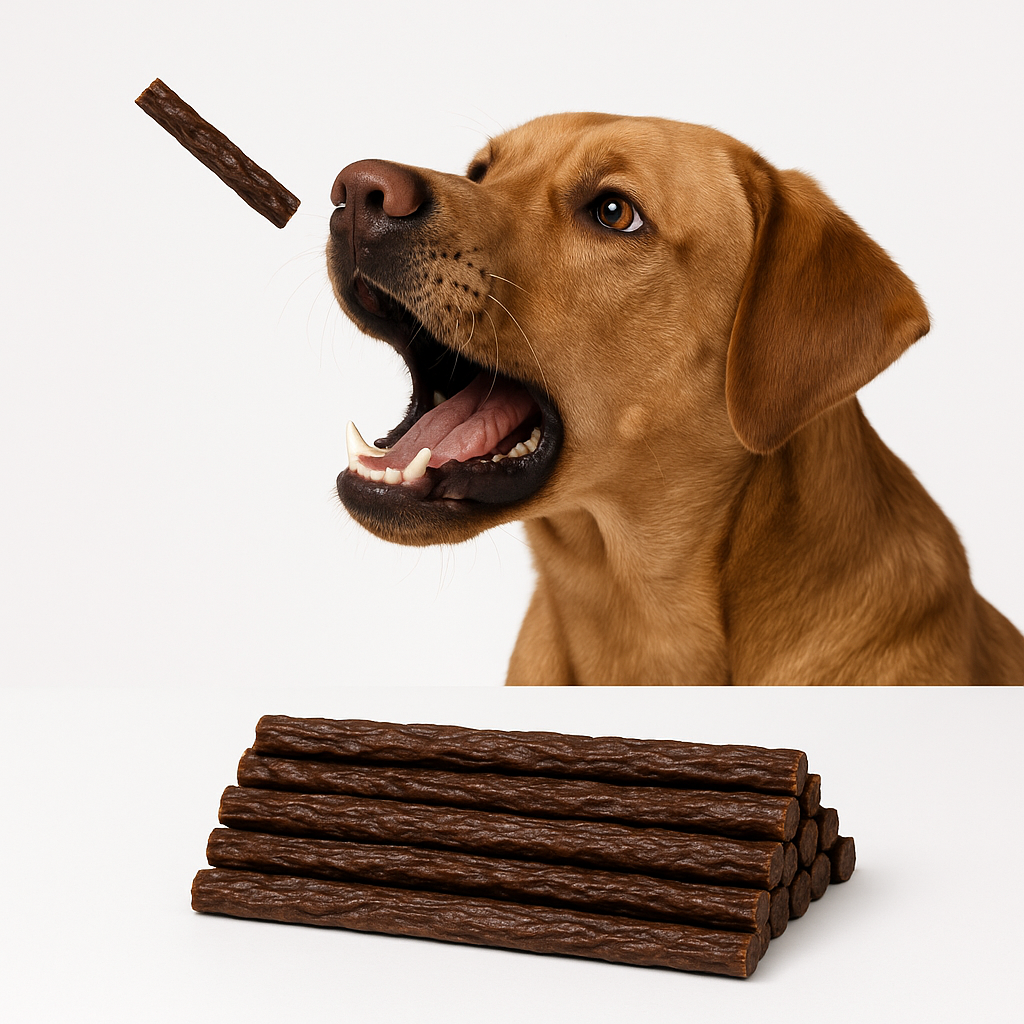 Unsere Knusperstangen sind ein toller, vollkommen naturbelassener Snack für Hunde jeden Alters und jeder Größe. Der getreidefreien, rein natürlichen Snacks sind ein wunderbares Leckerchen für Zwischendurch.